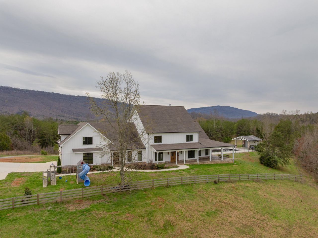 Gentleman's Farm in Wildwood, GA approximately 25 minutes from downtown Chattanooga. This gorgeous property features a custom-built modern farmhouse with a gunite pool overlooking a pond and privately positioned on 178 +/- mostly wooded acres with creeks, trails and wildlife right out your front door. This 4 or 5 bedroom, 5.5 bath home has a versatile floor plan and was well designed not only for gathering and entertaining but also to take advantage of this gorgeous setting. The home exudes exterior appeal with its Hardie and brick, and wrap-around covered porches. Inside, you will be equally delighted to find that it has just been freshly painted and boasts engineered hardwoods and tile throughout, crown moldings, spacious rooms, an open floor plan, formal and informal living spaces, 2 bedroom suites on the main, including the primary, an oversized 2-bay garage, and a separate bonus or bedroom over the garage with a private bath and 2 large closets. Your tour begins with the inviting foyer that has French doors to the office or living room on the right and opens to the dining room on the left. The heart of the home is the gourmet kitchen that has a built-in breakfast area and is open to the great room with a stacked stone fireplace and French doors to the rear covered porch. The kitchen has a center island, granite countertops, tile backsplash, custom cabinetry, under-cabinet lighting, high-end stainless appliances and access to the butler's pantry with a sink, ice maker and a walk-in pantry. The hallway to the garage has a convenient powder room, a guest bedroom with a private bath, a laundry room and a separate mudroom with built-in bench and cubbies, tons of counterspace and cabinetry and a stainless utility sink. The primary suite is on the opposite side of the house and boasts French doors to the rear covered porch, a large walk-in closet with a 2nd set of washer and dryer hook-ups and a luxurious primary bath with separate vanities, a free- standing tub, a separate shower with tile and glass surround and a water closet with bidet attachment. The upper level has a central bonus or family room with French doors to a large office or playroom, plus 2 additional bedrooms, one with a private bath, and the other with access to the shared hall bath. A hidden door disguised as a bookshelf leads to the walk-out attic with a duplicate door on the other side which accesses the bonus suite over the garage, or you can access it from a separate staircase in the garage - perfect for extended guests desiring some privacy. The pool is just steps away and has an automated cover and a covered patio area with a refreshment center. Simply a wonderful opportunity for the discerning buyer seeking a luxury acreage property to call home. Showings are by appointment only and with advanced notice, as family members sometimes hunt at the property, so please call for more information and to schedule your private showing. Information is deemed reliable but not guaranteed. Buyer to verify any and all information they deem important.